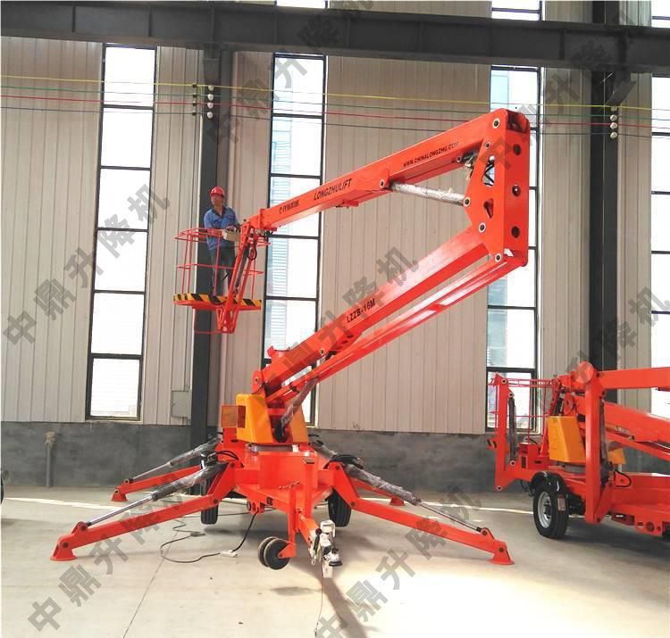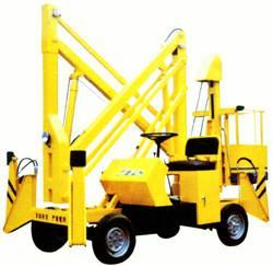 拖車折臂式升降機:可以掛在汽車上,與汽車同步,適合野外高空作業(yè)。