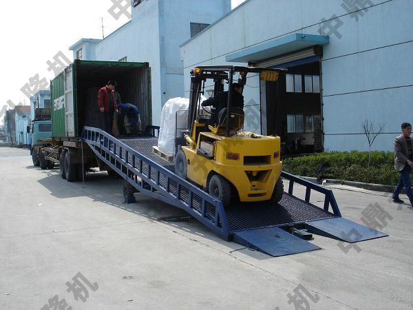 移動式液壓登車橋是與叉車配合使用的貨物裝卸輔助設備,可根據汽車車廂的高低調節高度,叉車可以直接通過本設備駛入車廂內部進行貨物的批量裝卸,僅需單人作業,即可實現貨物的快速裝卸。它使企業減少大量勞力,提高工作效率,獲取更大經濟效益。