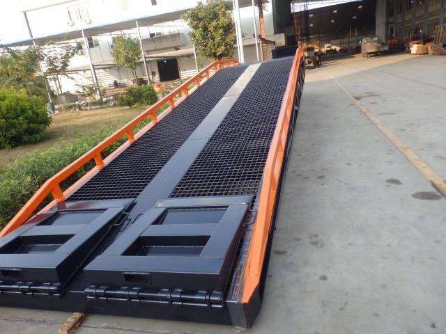 用于無裝卸設備的貨臺以及流動裝卸場所,是與叉車配合使用的貨物裝卸輔助工具,借助該設備,叉車能直接駛入汽車車廂內部進行批量裝卸作業(yè)。只需單人操作,不需動力電源,即可實現(xiàn)貨物