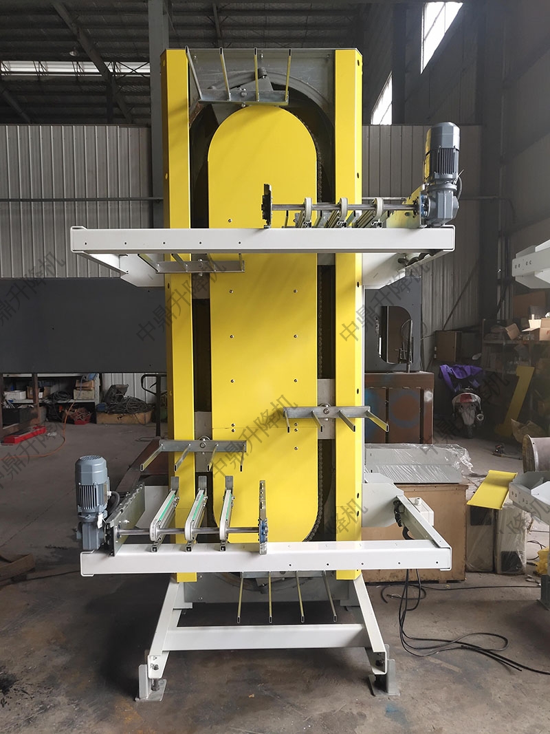叉臂循環式提升機采用高質量的叉臂設計,確保物料穩固提升和精確定位。傳動齒輪系統由耐用材料制成,提供平穩而高效的動力傳輸,延長設備使用壽命。配備的滾輪輸送帶能夠平穩輸送各種物料,降低摩擦力,提升運輸效率。提升機立柱采用堅固的結構材料,保證設備的穩定性和承載能力,確保長時間高效、安全運行。每個細節都經過精心設計,確保提升機在高強度作業環境中的優異表現。